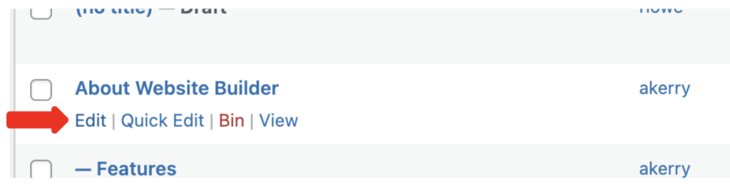 You can also edit a page from anywhere on your site when you’re logged in. Just click ‘Edit Page’ to edit the page you’re on.