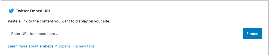 With the Twitter embed block, you can embed Tweets (posts on Twitter – now known as ‘X’) into your posts and pages. You don’t need a Twitter account to be able to use it. You can only embed public tweets, though.